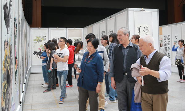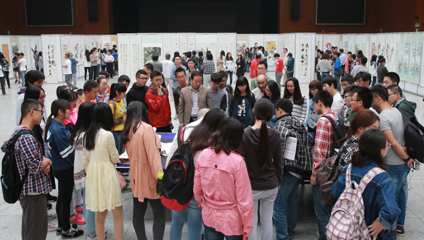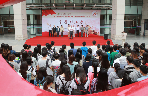 On the morning of September 18th, 2015 for the commemoration of the 70th anniversary of the victory of Chinese People’s war of Resistance against Japanese Aggression and the World Anti-Fascist War, the Painting and Calligraphy Exhibition themed "Keep national missions in mind, Dare not forget national humiliation” was held at Xiu Shan Activity Center at south campus.