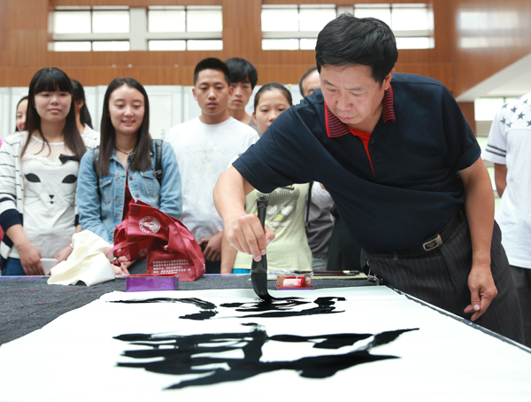 After the opening ceremony, the members of Calligraphy and Painting Association wielded their writing brushes, and presented their works to visitors.