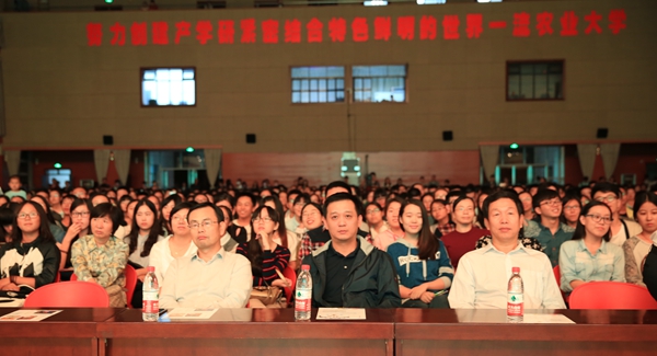 As the tinkling of Chinese 7-Stringed zither perfectly blending with the lingering sound of bamboo flute, two beauties sailed onto the stage, singing " the mist at down and rain at dusk, the brower in the evening rays, the threads of clouds in the gales of wind, the painted boat and hazy sprays, all are foreign to secluded maids”. The audience were soon brought to the world of classic, being told the love story of Ms. Du Liniang and Mr. Liu Mengmei. The artists of Shanghai Kunqu Opera Troope integrated the poetic and pictorial splendor of stage art with modern aethetic appreciation, demonstrating the grace and charm of Kunqu opera. Mr. Li An and Mz. Wu Shuang, who are winners of highest theatrical award in China ,Plum Blossom Prize, along with Mz. Luo Chenxue gained a standing ovation of the teachers and students of NWAFU.